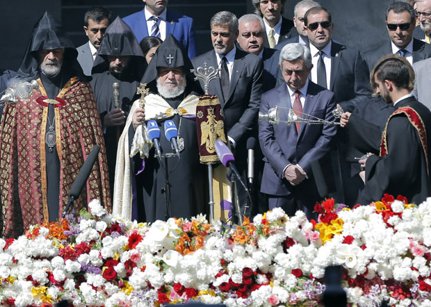Залажући се годинама да се масакр стотина хиљада Јермена, а Јереван тврди да је реч о милион и по људи, док Турска говори о 300.000 до 500.000 убијених, призна као геноцид, Клуни је у суботу стигао у бившу совјетску републику како би учесвовао у годишњем маршу.